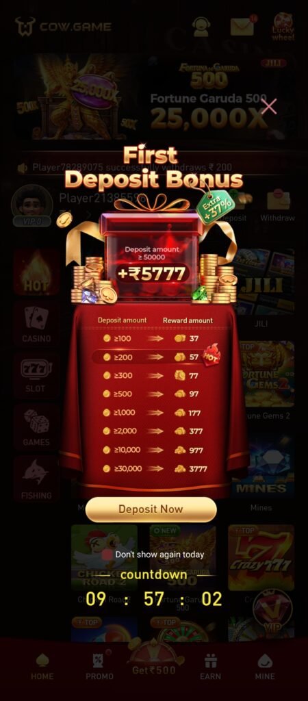 Enter Cow Game , a powerful gaming and earning platform. you entertainment earns rewards. Download Cow Game App Today and Unlock bonus amounts of 500 to start journey.