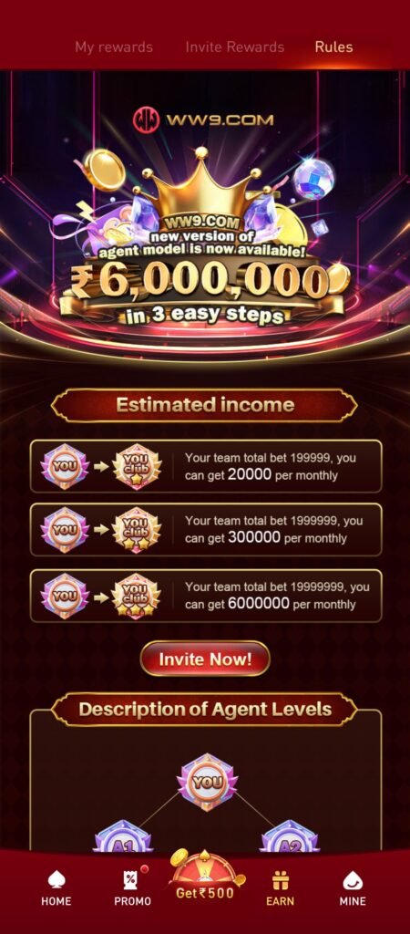 WW9 Game may provide bonus offers and referral rewards for users. This program provides a easy and safe referral program, these rewards are subject to specific rules and condition. Users are encouraged to review all terms carefully before participating.